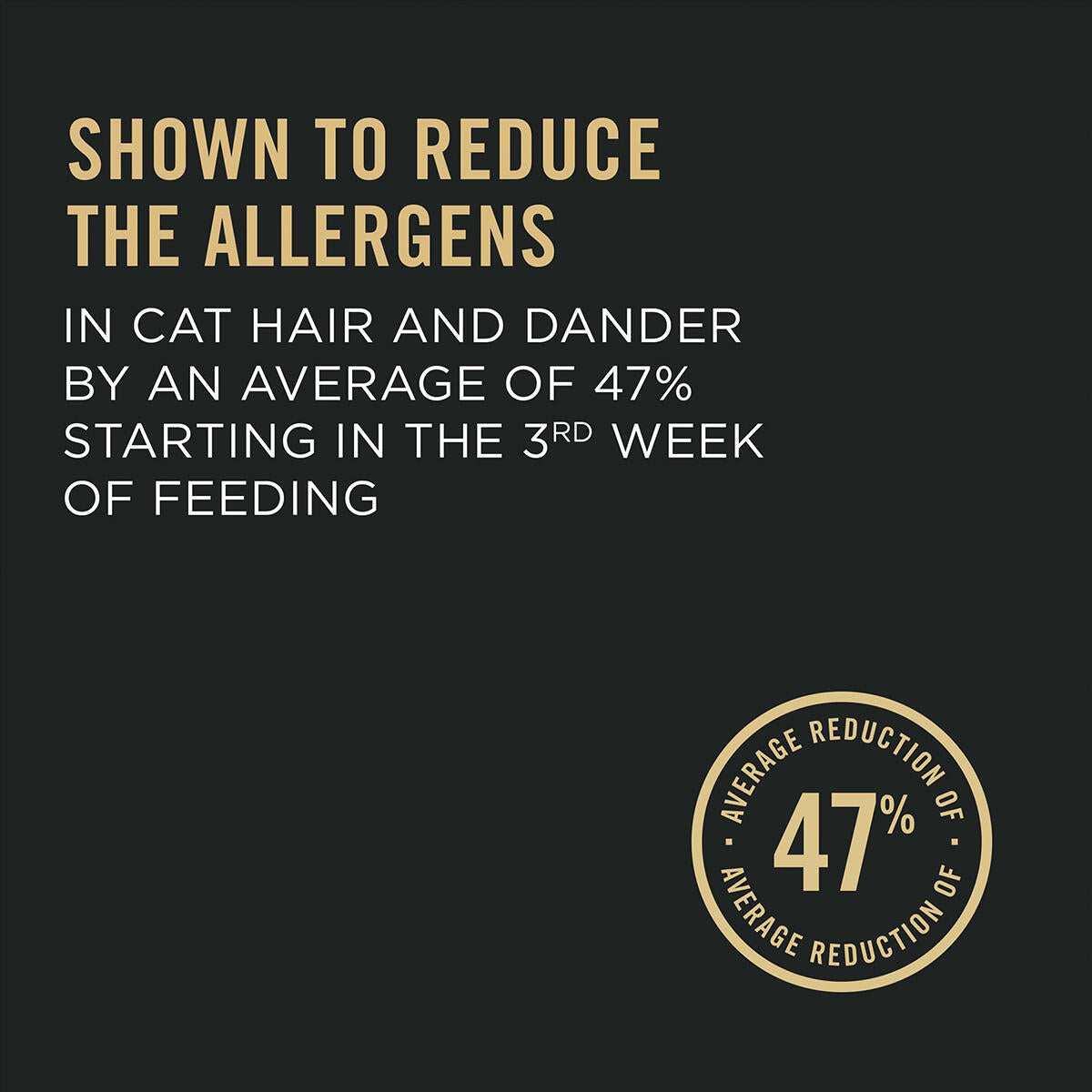 • Shown to reduce allergens in cat hair and dander by an average of 47% in the third week of feeding