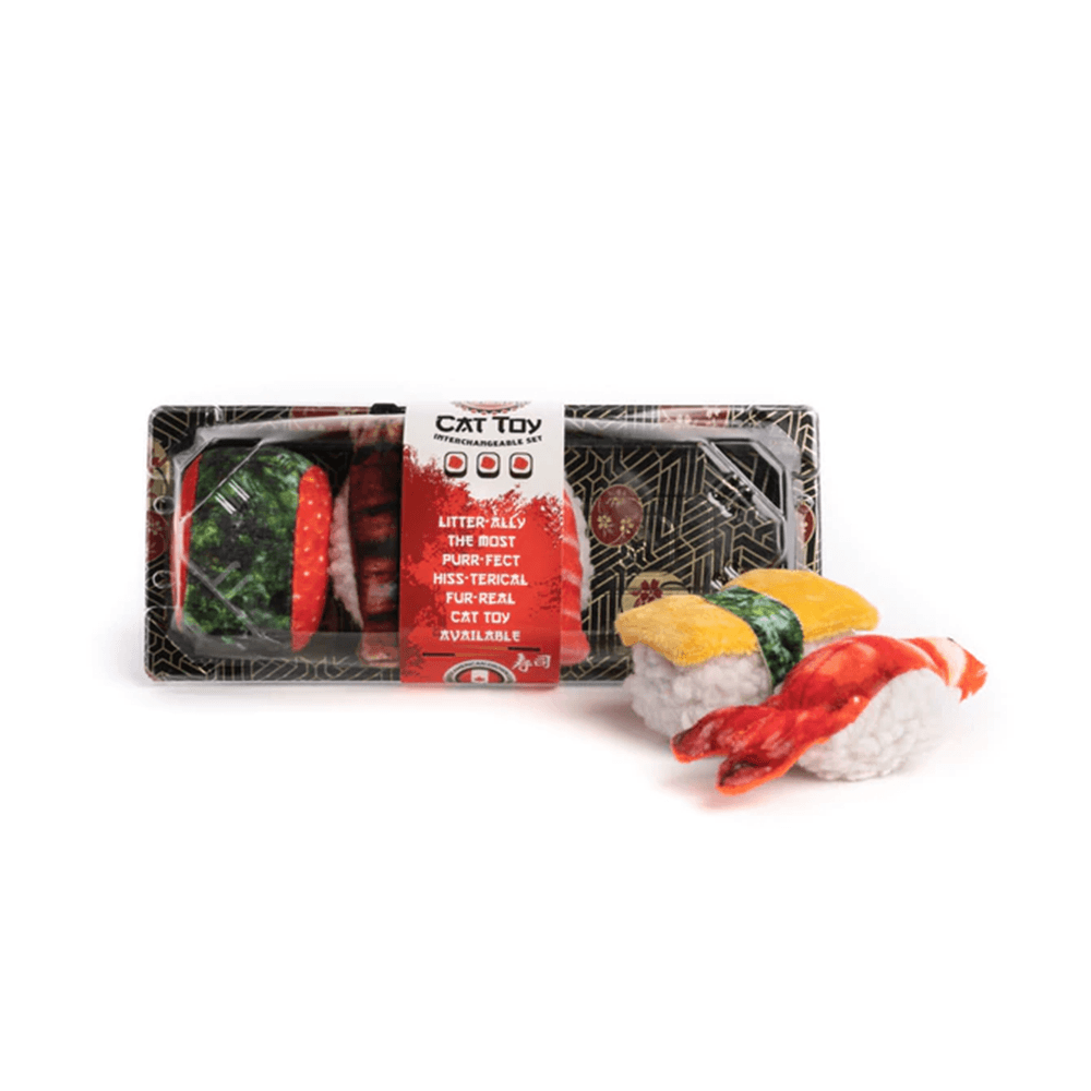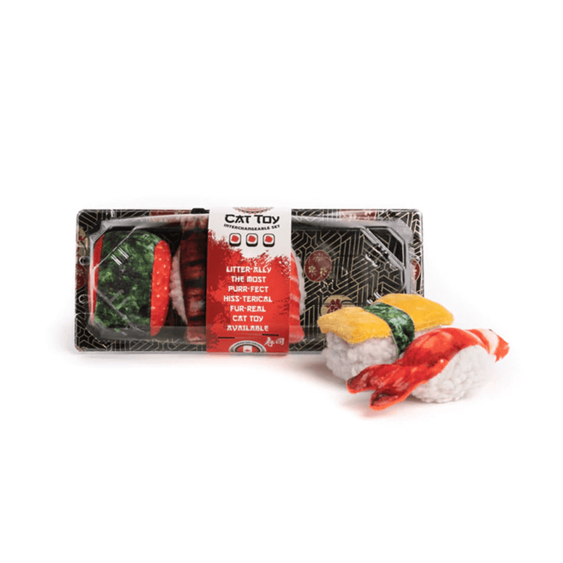 This cat sushi toy is litter-ally the most hiss-terical and purr-fect cat toy available. Five pieces of sushi, completed with catnip locally grown in North America.