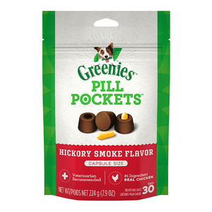 • Contains one (1) 7.9 oz. 30-count pack of GREENIES PILL POCKETS Capsule Size Dog Treats Hickory Smoke Flavor; MADE WITH NATURAL INGREDIENTS plus trace nutrients