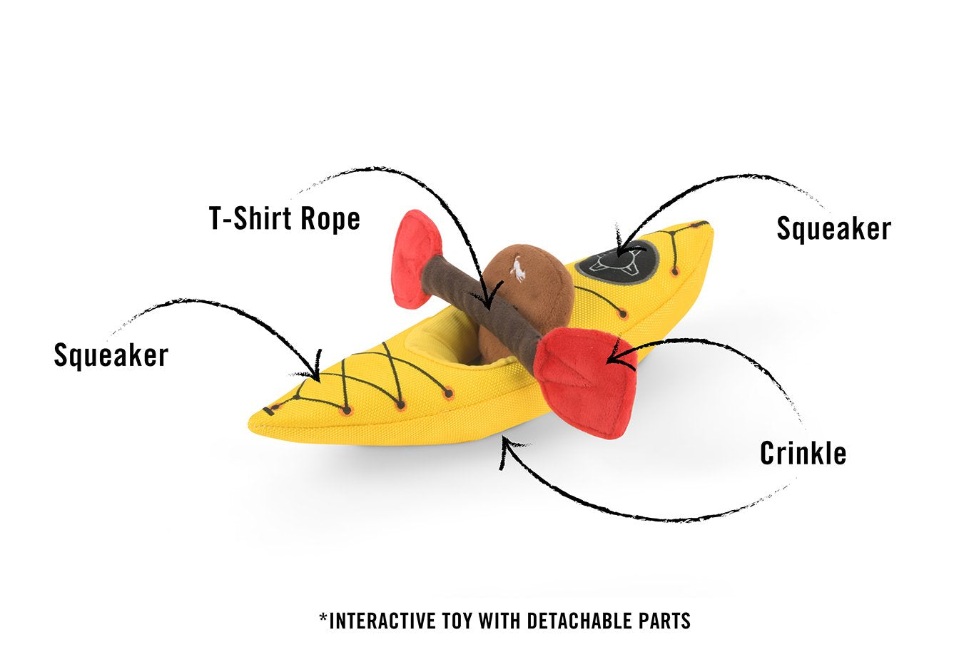 Inspired by our beloved office dog and head product tester Corbin’s love of the great outdoors, P.L.A.Y.’s Camp Corbin dog toy collection was born. This collection is comprised of all of his favorite camping essentials in plush toy form including a tent with cozy sleeping bags inside and a tasty carob s’more to enjoy by the campfire.