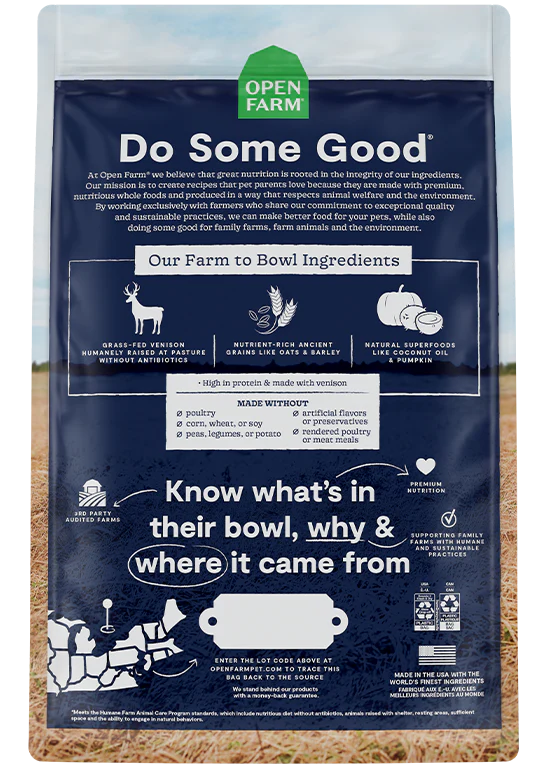 Ingredients: Venison, Oats, Ocean Menhaden Fish Meal, Barley