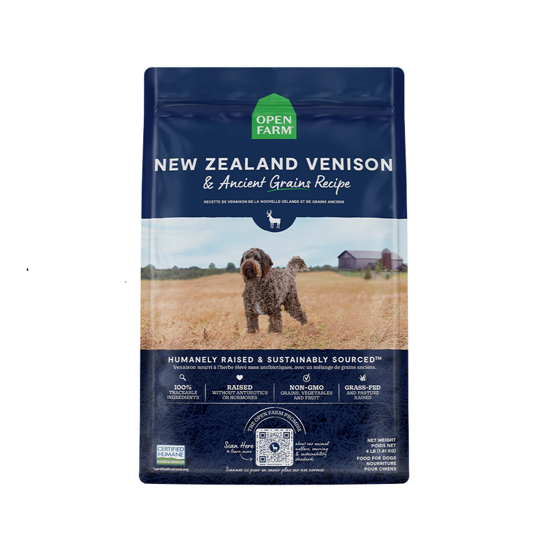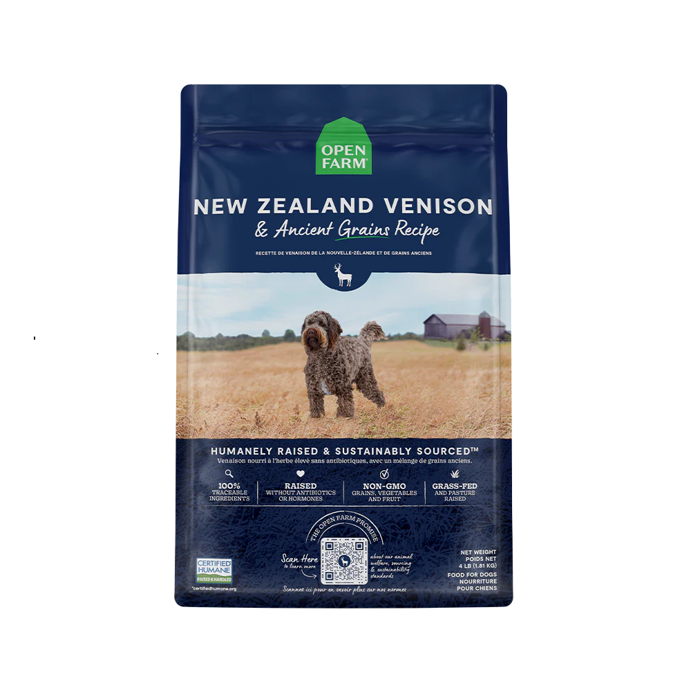 This protein-packed kibble is a premium, nutrient-dense source of energy, thanks to a delicious blend of humanely raised, grass-fed venison, superfoods, and ancient grains to support your dog’s overall health. Venison is a novel protein, making it a great solution for dogs with food sensitivities. Free of peas, potatoes, corn, wheat, soy, and legumes.