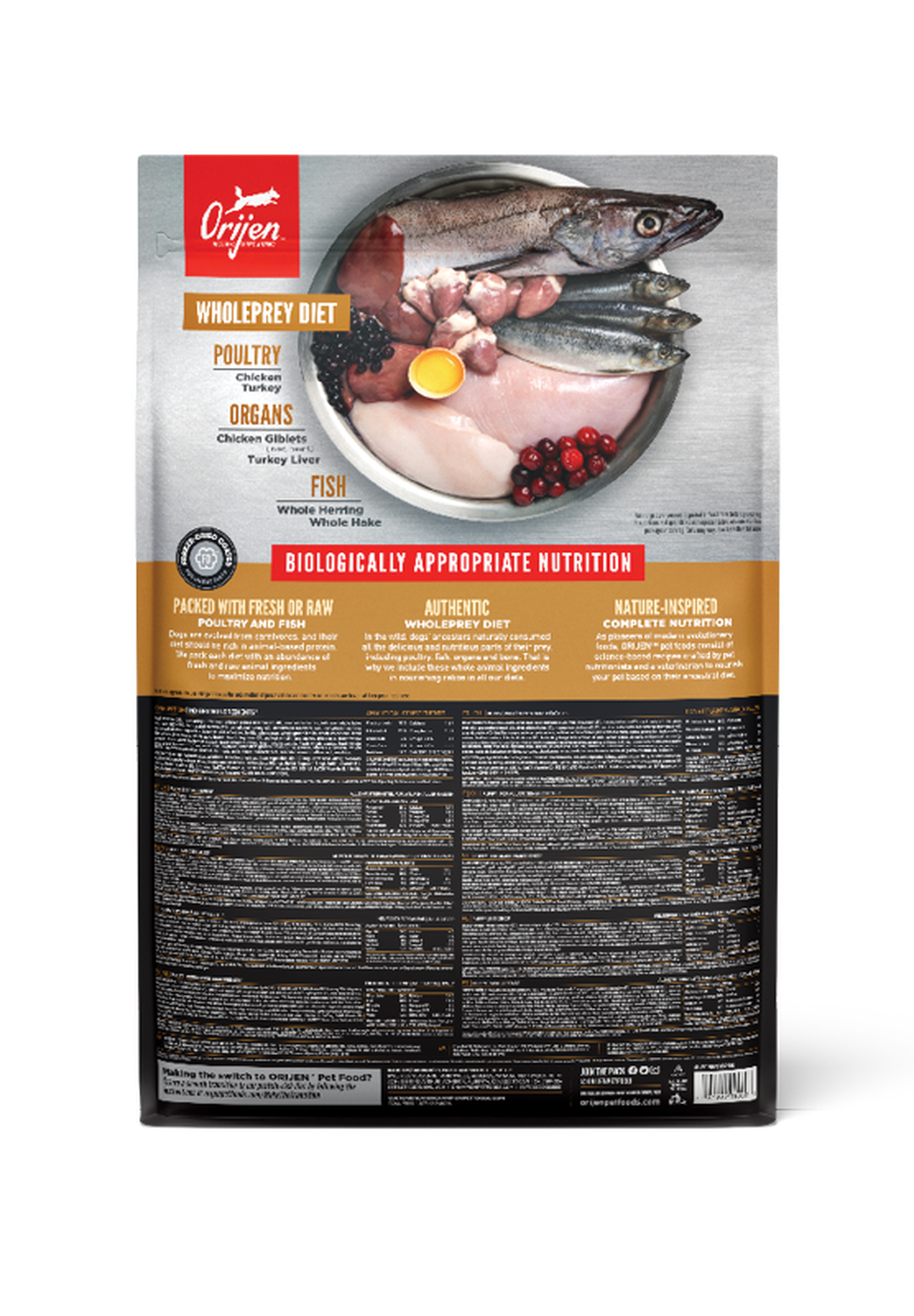• Our authentic WholePrey diet features the most succulent parts of the prey like poultry or fish, organs and bone to mimic what your dog’s ancestors consumed in the wild.