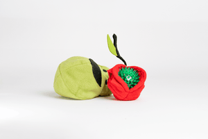 NOWK's Ball in a Fruit Toy is a great ball toy in disguise! Throw this toy and it will bounce around in random directions for more fun. It has 3 layers: Pear, Apple and ball for your dog to enjoy. Squeaker is also inside the ball for more fun!
