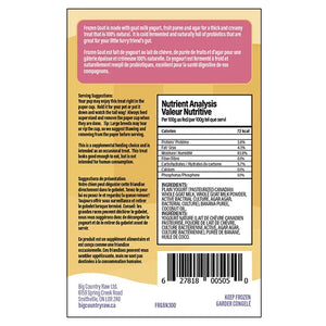 Big Country Raw Frozen Goat Canine Creamery is an irresistible frozen yogurt treat to get your dog's tail wagging during the hot summer. The Bananny Recipe is hopping with 100% natural Canadian sourced goat's milk with banana puree and coconut oil mixed with agar agar and cold fermented to give the ice cream its creamy and thick texture while keeping the natural probiotics that goat's milk contains.