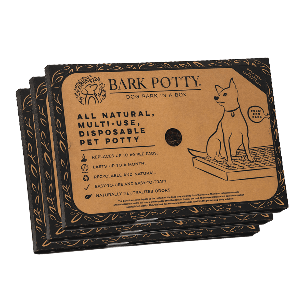 Bark Potty is made of real bark and like real grass, contains the natural smells that compel dogs to "go." The tray is lined to prevent leaks, the proprietary bark naturally neutralizes odors, and one Potty replaces up to sixty pee pads. Make the switch to the eco-friendly potty pad that's better by design.