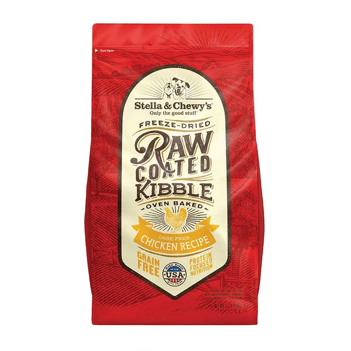 Stella & Chewy's Raw Coated Kibble - Cage-Free Chicken Recipe is a delicious, easily digestible food that has many of the benefits of feeding raw with the convenience of a dry kibble. This balanced, minimally-processed recipe is oven-baked and is made of 65% pure ingredients from animals such as chicken, chicken organs, and beneficial oils. The other 35% is rich in organic fruits, vegetables and a variety of other natural ingredients like probiotics for digestion.