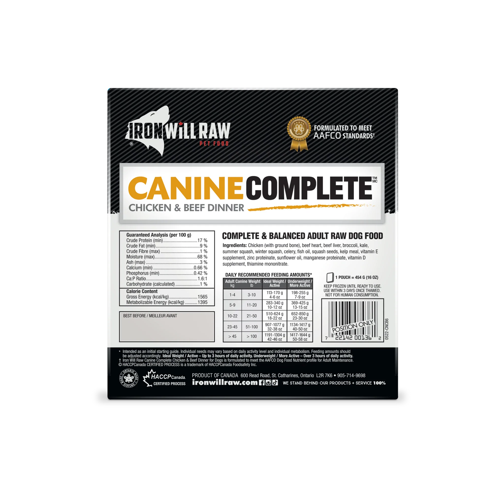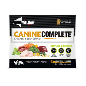 The Canine Complete Chicken & Beef Dinner is a delicious blend of quality chicken muscle meat and beef organs!