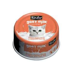 Kit Cat Goat Milk Chicken and Salmon Canned Cat Food is specially formulated by nutritionists for overall health and wellness. It is perfect for kitty’s who have sensitive stomachs and suffer from any number of digestive issues. Plus, added goat milk can help to decrease mucous and inflammation. It contains no grains, added colours, or preservatives.