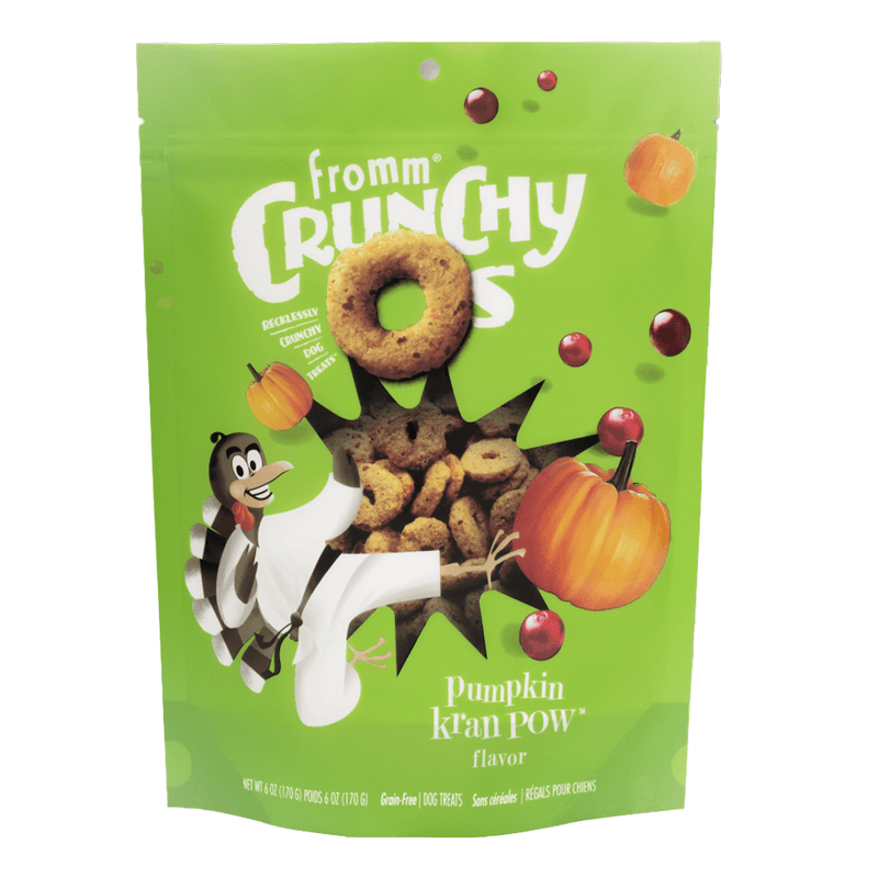 What happens when turkey, cranberries, and pumpkin mix it up? A food fight at Thanksgiving? Maybe. But here at Fromm, it means we’re busy making a great dog treat that’s delicious, wholesome, and recklessly crunchy. And when our Jumpin’ Jack Giblets gets in on the action, all we can do is watch him chop things up and let it fly! Now it’s your dog’s turn to do the crunching with Crunchy Os – the great snack they love to gobble.