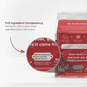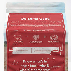 This tasty high protein, gluten-free meal is loaded with 100% grass-fed (and finished) that’s free of antibiotics and added growth hormones, wholesome grains like steel-cut oats, quinoa, brown rice, and chia seeds and superfoods like coconut oil, pumpkin and turmeric. It’s dry good-for-your-pup food made without peas, potatoes and legumes.