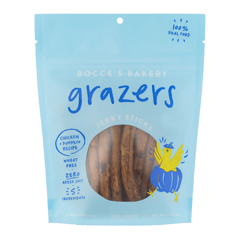 All-natural jerky sticks baked with USA chicken (our first ingredient!) and boosted with easy to digest pumpkin (no added salt or sugar— of course) in a chewy texture that will keep your pup wanting more! Did we mention they’re 25% protein?