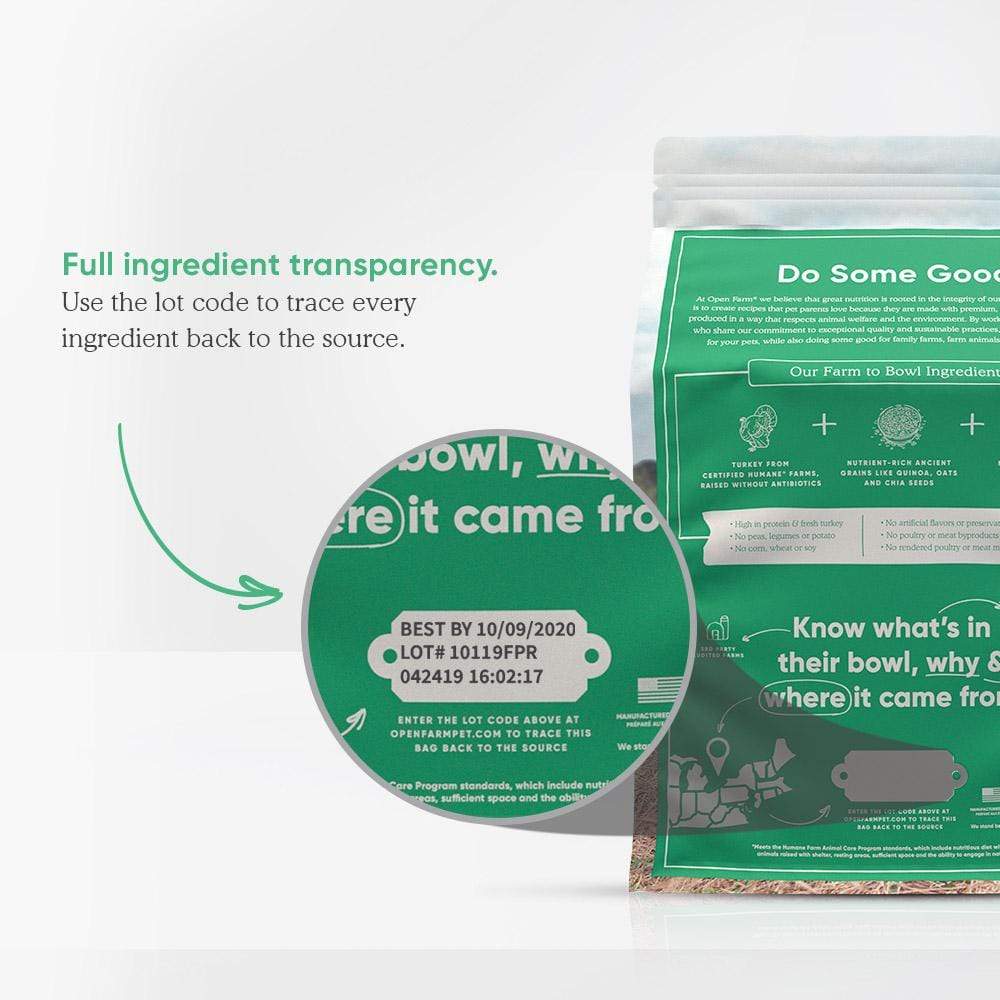 Turkey, Oats, Ocean Whitefish Meal, Sorghum, Quinoa, Coconut Oil, Herring Meal, Natural Flavor, Brown Rice, Pumpkin, Salmon Oil, Apples, Chia Seed, Potassium Chloride, Salt, Choline Chloride, Chicory Root, Vitamin E Supplement, Calcium Pantothenate, Niacin Supplement, Vitamin A Supplement, Riboflavin Supplement, Vitamin D3 Supplement, Vitamin B12 Supplement, Thiamine Mononitrate, Folic Acid, Zinc Proteinate, Calcium Carbonate, Iron Proteinate, Copper Proteinate, Manganese Proteinate, Selenium Yeast, Calcium Iodate, Taurine, Mixed Tocopherols (Preservative), Cinnamon, Turmeric