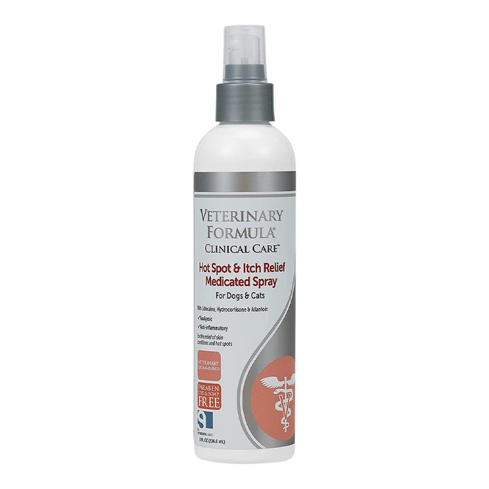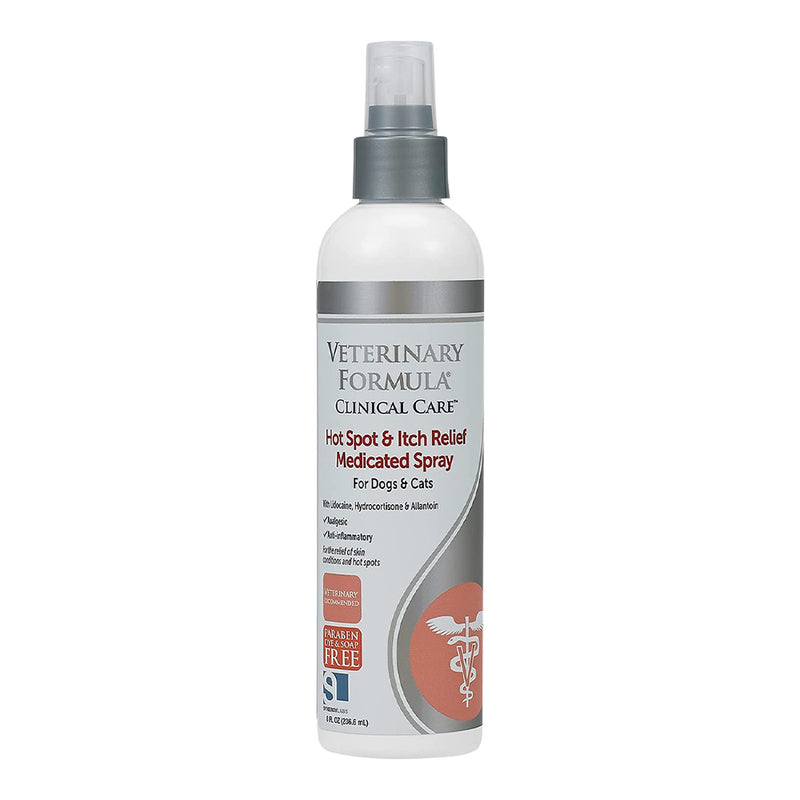 Veterinary Formula Hot Spot and Itch Relief Medicated Spray for Pets is formulated for cats and dogs, giving your pet rapid relief from inflammation, itchy skin and associated conditions, to reduce scratching.