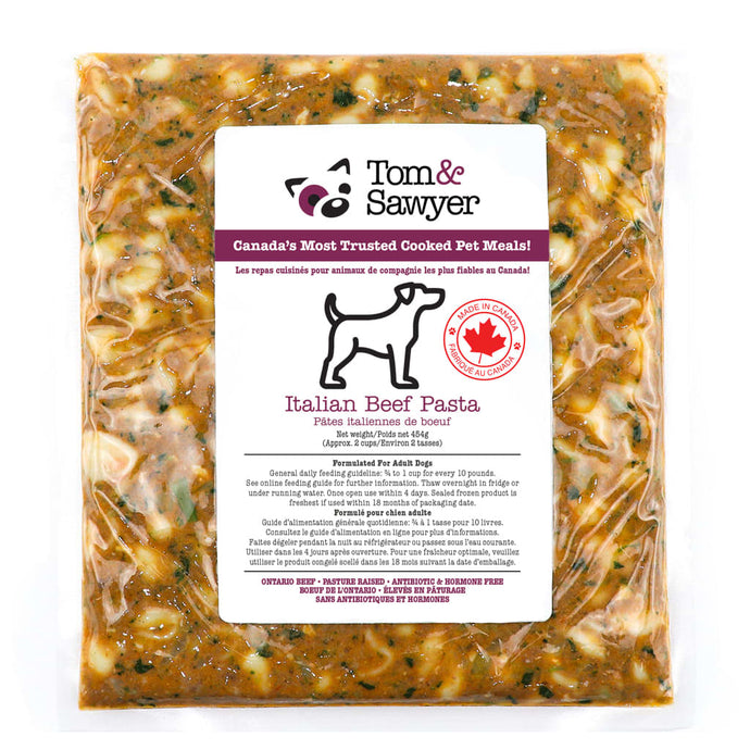 The most popular meal from Tom & Sawyer has just gotten better. The new & improved Italian Beef Pasta now has even more beef to please your pups.