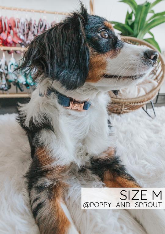 We’re bringing denim on denim back. The early 2000s can have nothing on your pup as they rock this tried and true trend. With its rose gold accessories, this collection is a fabulous choice for pups of all breeds and sizes.