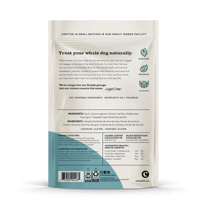 NEW! Each soft and chewy treat contains all natural ingredients starting with Duck making it the perfect high protein snack for dogs of all ages and sizes. Duck is an alternative protein ideal for dogs with specific allergies or food sensitivities.