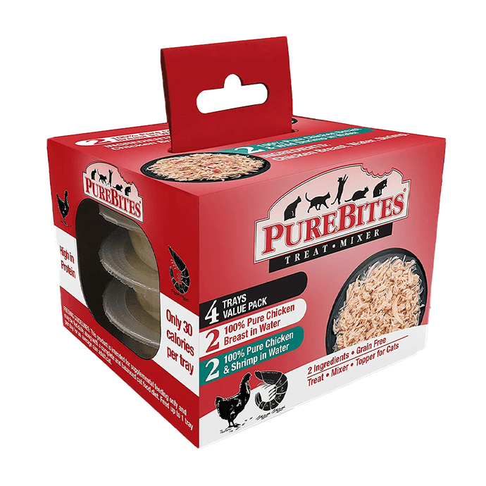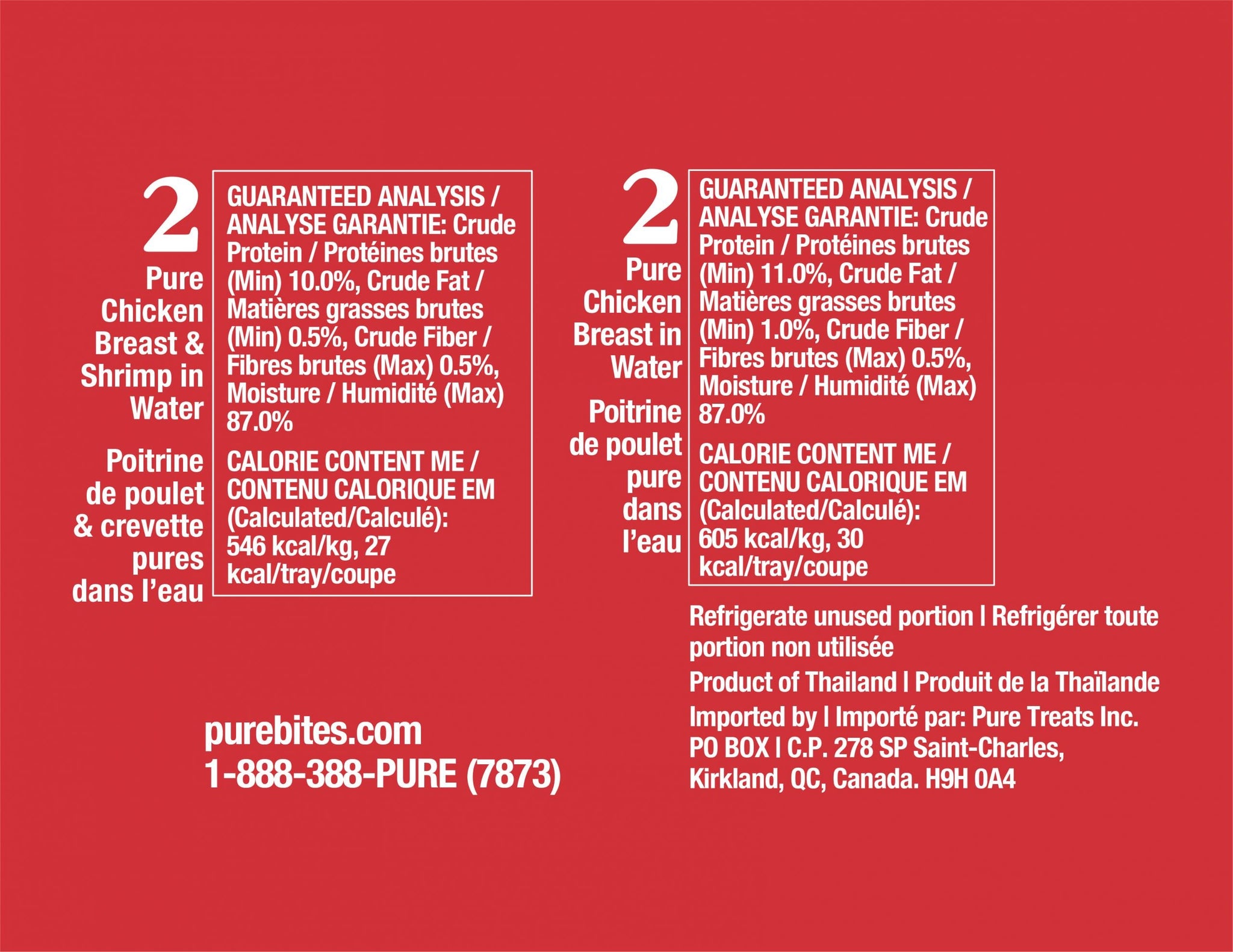 • The Chicken & Shrimp Mixers variety pack comes with 2 trays of Chicken Breast in Water 1.76oz |50g and 2 Trays of Chicken Breast & Wild Shrimp in Water 1.76oz |50g