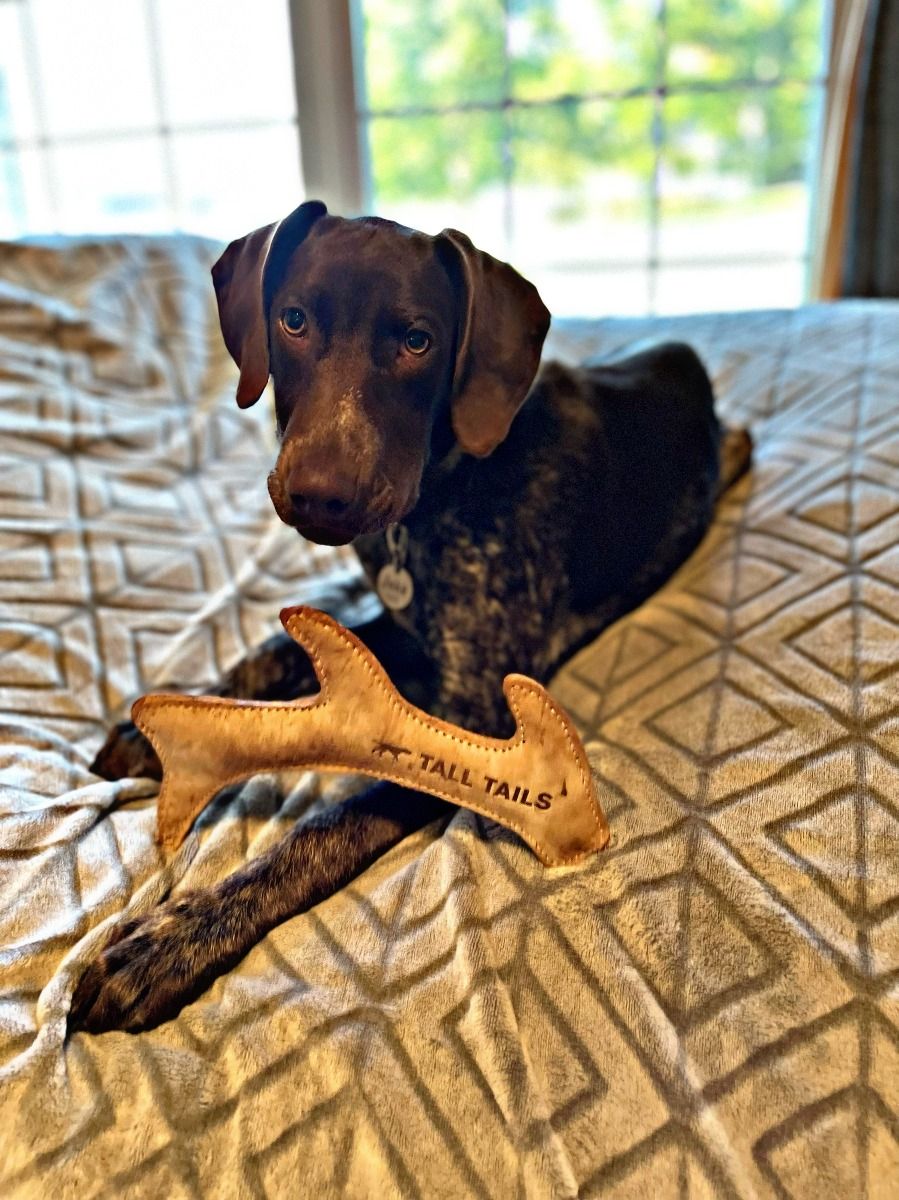 Whether your pup wants to play a rousing game of fetch or tug-of-war, this Natural Leather Antler Toy is made with you and your pup in mind. No toxic chemicals, artificial coloring, or simulated flavoring are used in the production process. This size of this toy makes it ideal for medium and large dogs, who love to retrieve and tug, but not recommended for aggressive chewers.