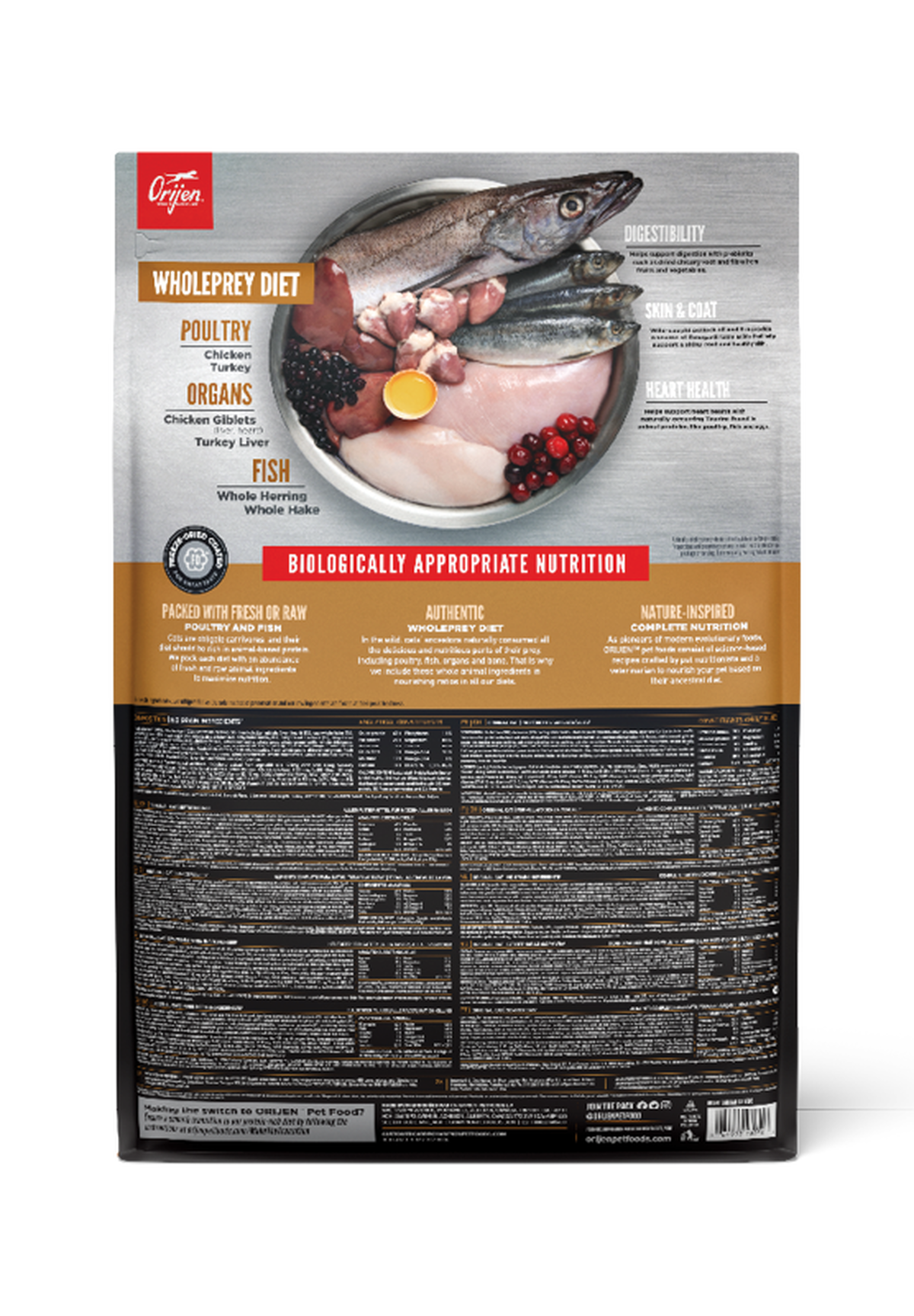 - Our authentic WholePrey diet features the most succulent parts of the prey like poultry or fish, organs and bone to mimic what your cat’s ancestors consumed in the wild.