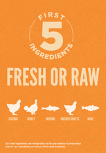 - The first 5 ingredients are fresh or raw1 poultry and fish ingredients.