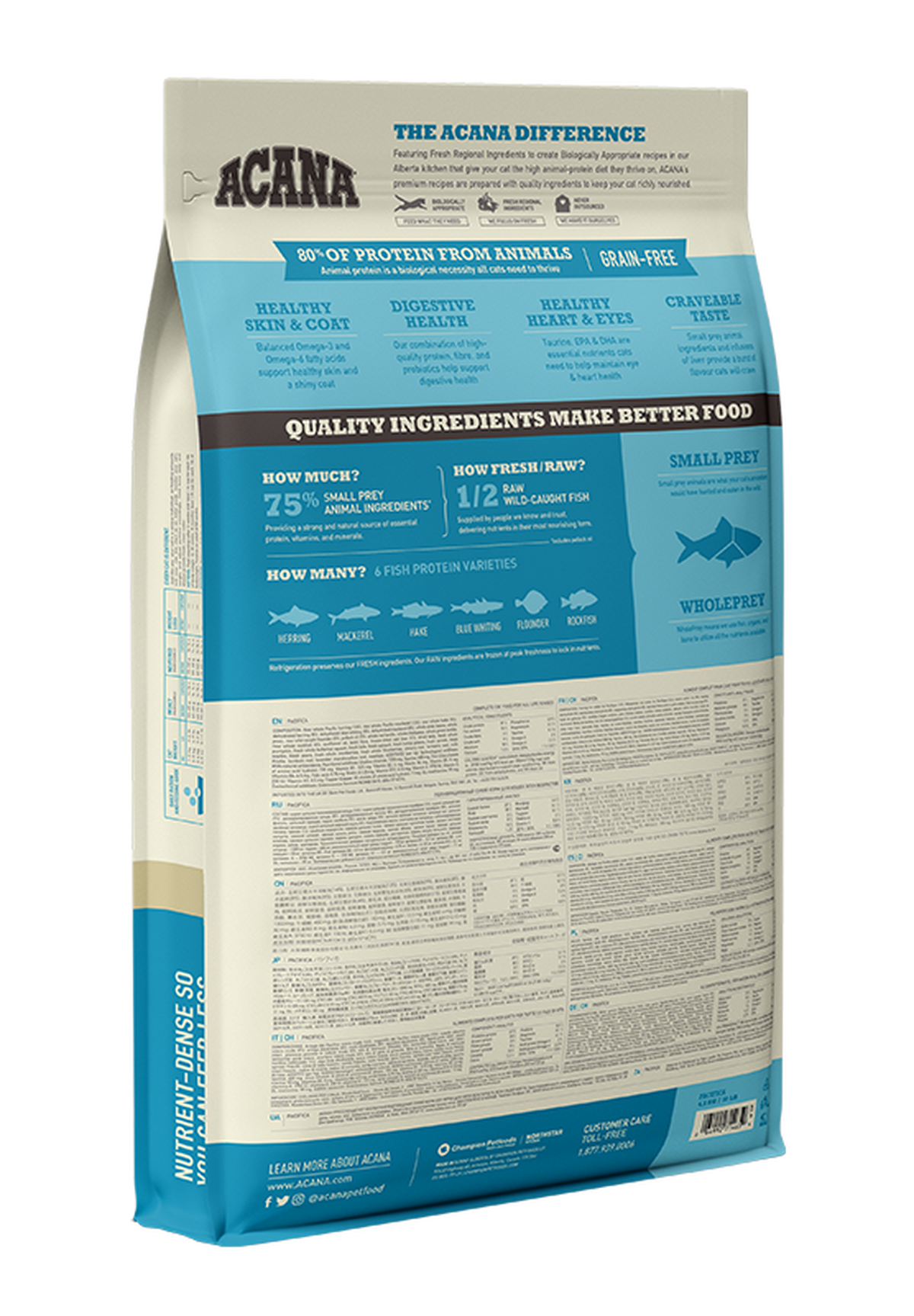 Cats are anatomically designed to eat a diet rich in animal protein. Bursting with wild-caught herring, mackerel, flounder, hake, and rockfish in WholePrey ratios of fish, organs, and bone, ACANA Pacifica naturally delivers the nutrients your cat requires for peak health, nourishing them the way Mother Nature intended.
