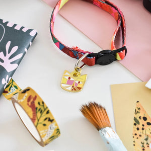 A unique and colourful cat collar that will make your cat stand out from the rest, with matching cat shaped enamel charm.