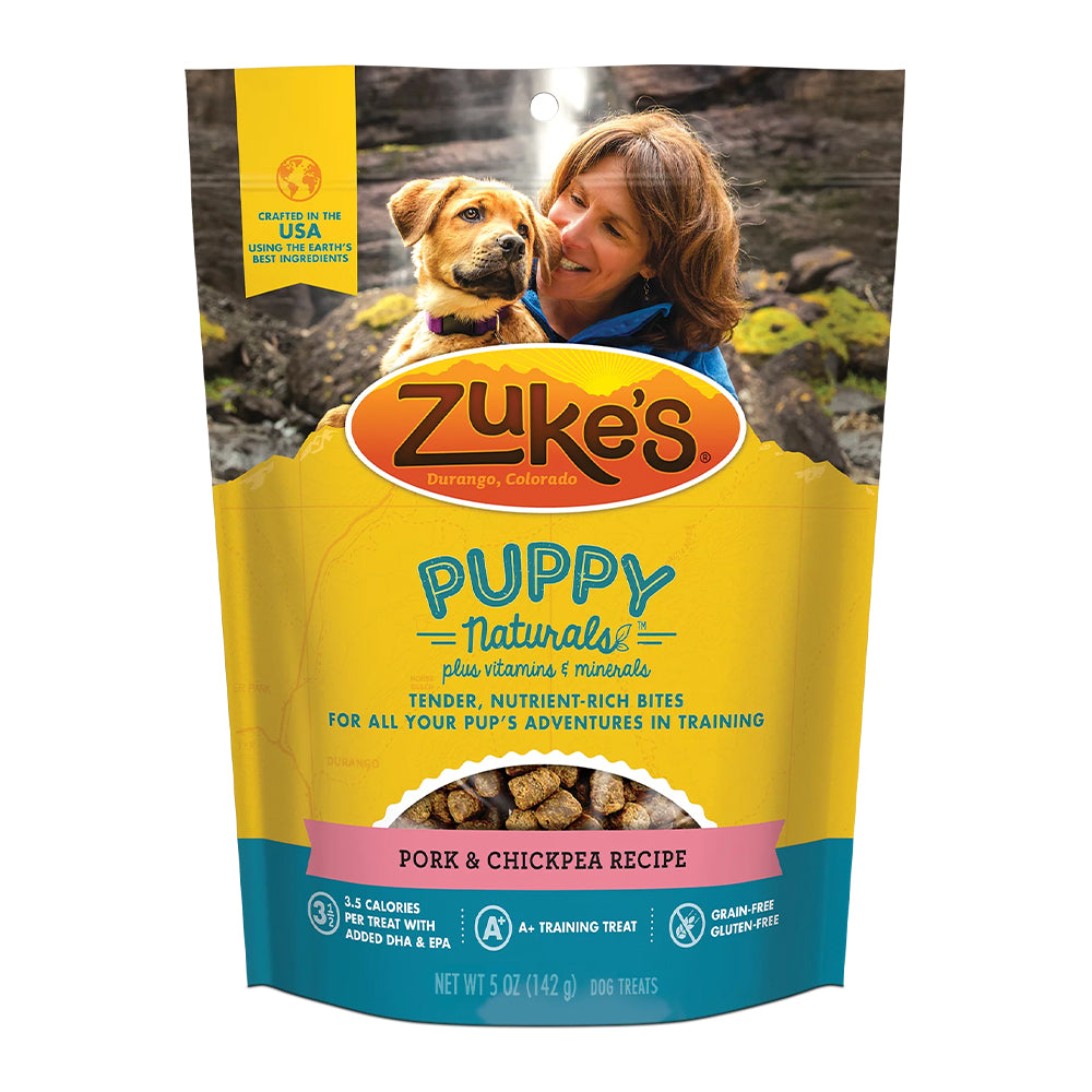 To your puppy, every day is a new adventure. There’s so much to learn: Come. Sit. Stay. And, perhaps most important, always do your business outside. Treat your way to a better-behaved puppy with grain-free Zuke’s Puppy Naturals. They’re an ideal, puppy-sized reward for a job well done and a perfect complement to your pup’s playful spirit and developing taste buds. Specially crafted in the USA using the Earth’s best ingredients, they’re made with protein-rich salmon, pork or lamb, plus added DHA and EPA to help support puppy’s healthy brain development. Mighty impressive at just 3.5 calories per treat.