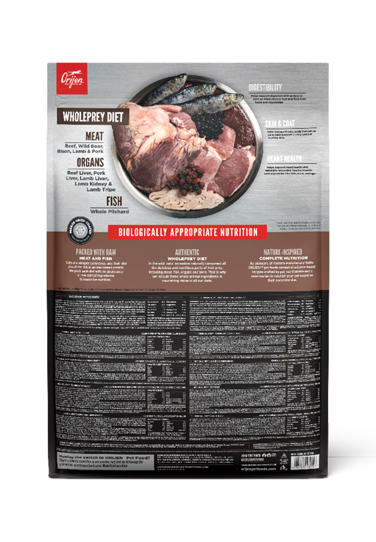 • Our authentic WholePrey diet features the most succulent parts of the prey like meat or fish, organs and bone to mimic what your cat’s ancestors consumed in the wild.