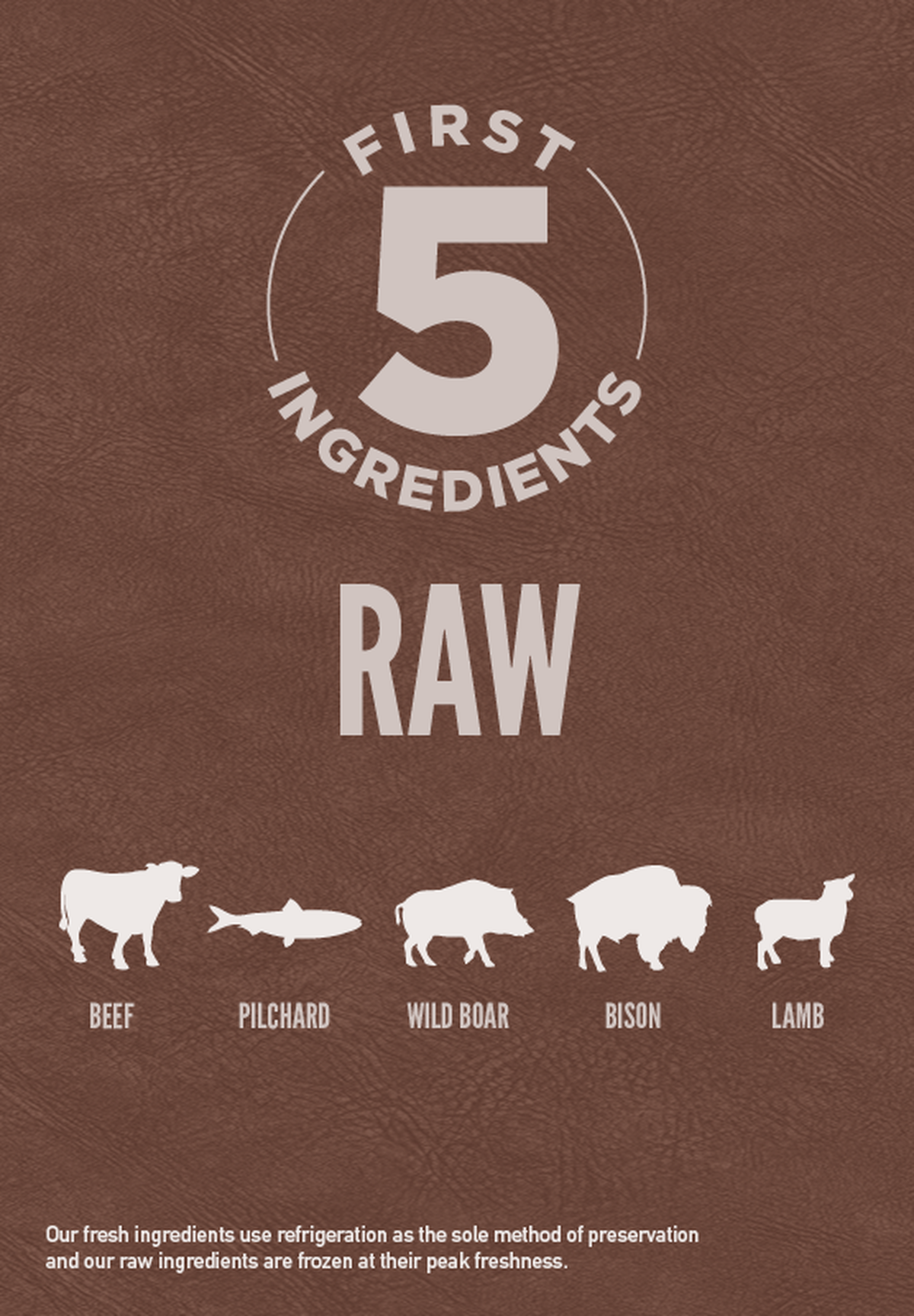 • The first 5 ingredients are raw1 meat and fish ingredients.