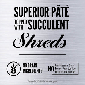 - This diet is a high-quality pâté of lamb, beef, poultry and fish topped with succulent shreds of beef.