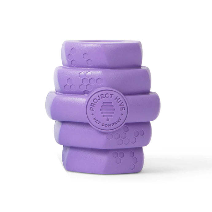 Our mango-scented Hive Chew Toy is a super engaging toy for larger dogs. Made in the USA, its erratic bounce keeps dogs happily occupied during fetch. Dogs love to gnaw on the Hive Chew Toy’s unique knobby ends, promoting healthy teeth and gums. It's also perfect as a treat dispenser—any treat. We recommend our Hive Chew Stick Treats, uniquely designed to wedge snugly inside the cavity, creating an even more enriching experience for your dog.