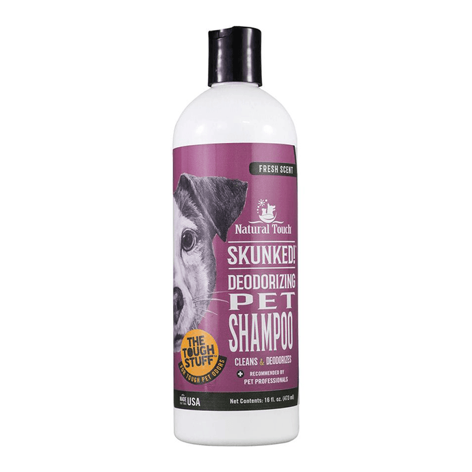 Were you charmed by Pepe' Le Pew? You don't have to hold your breath for long. Bathe in Natural Touch's special patented formula to get the stench out. Both cats and dogs alike will be thankful!