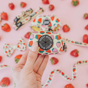 Finding puppy kisses in every corner of this strawberry field, our 'Strawberry Fields Furever' waste bag holder will leave you with so much love!