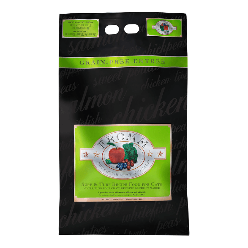 Fromm Four-Star Nutritionals® Surf & Turf Recipe Food for Cats is formulated to meet the nutritional levels established by the AAFCO Cat Food Nutrient Profiles for all life stages.
