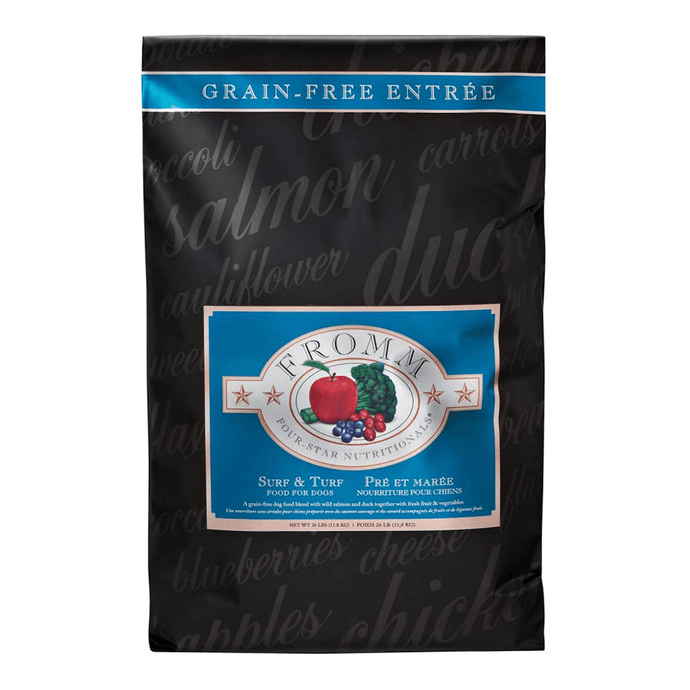 Fromm Four-Star Nutritionals® Surf & Turf Recipe Food for Dogs is formulated to meet the nutritional levels established by the AAFCO Dog Food Nutrient Profiles for all life stages, including growth of large size dogs (70 lb. or more as an adult).