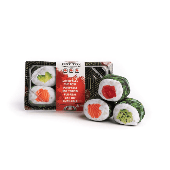 This cat sushi toy is litter-ally the most hiss-terical and purr-fect cat toy available. Six pieces of sushi, completed with catnip locally grown in North America.