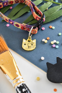 A unique and colourful cat collar that will make your cat stand out from the rest, with matching cat shaped enamel charm.