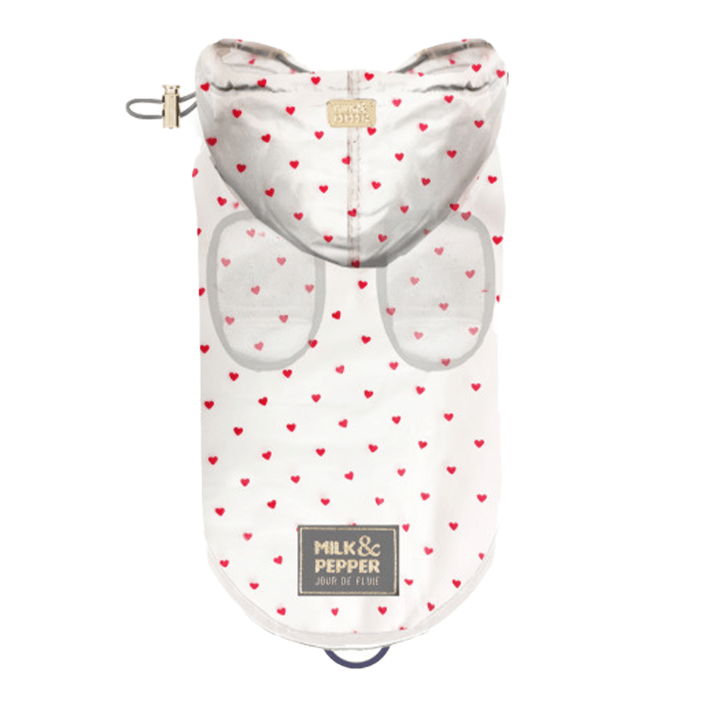 • Transparent waterproof material with « red little hearts » exclusive printing